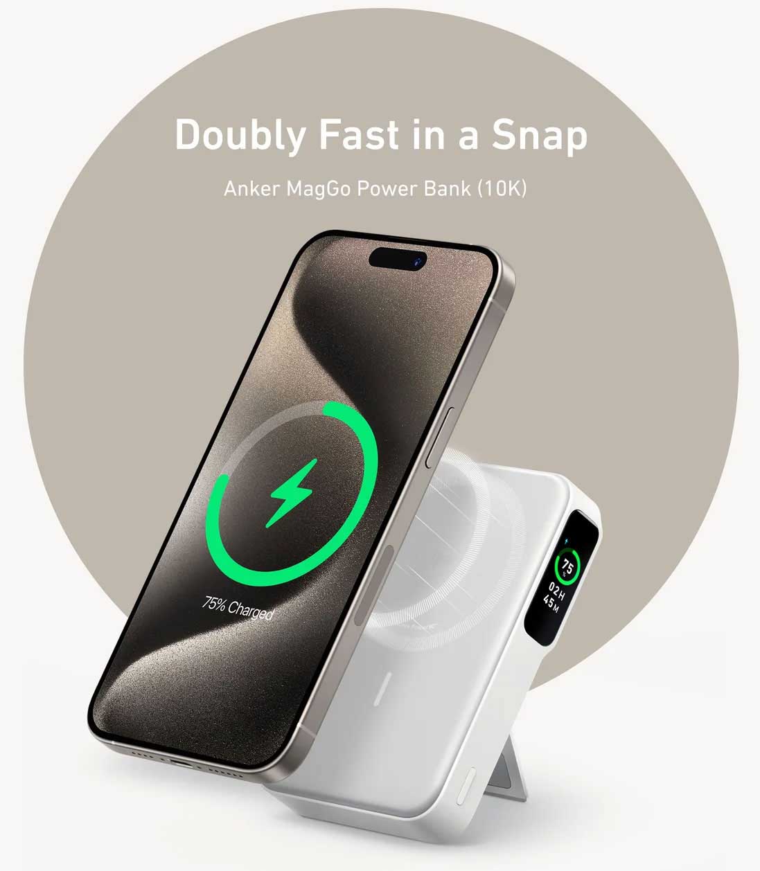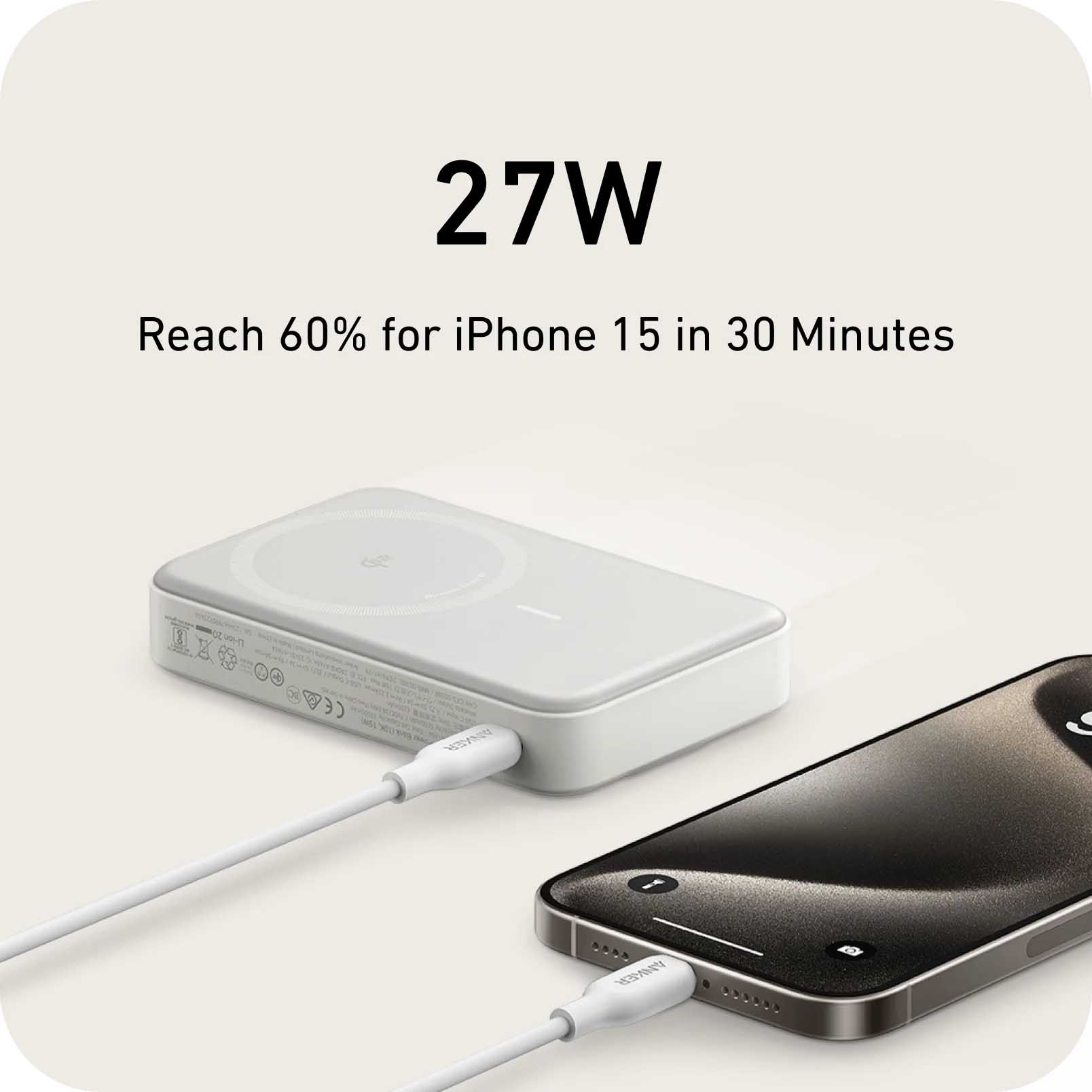 Nhờ Wireless PowerIQ™️ của Anker, hệ thống sạc nhanh không dây thông minh nhất của chúng tôi, giờ đây chúng tôi có thể sạc iPhone của bạn bằng từ tính với tốc độ gấp đôi.